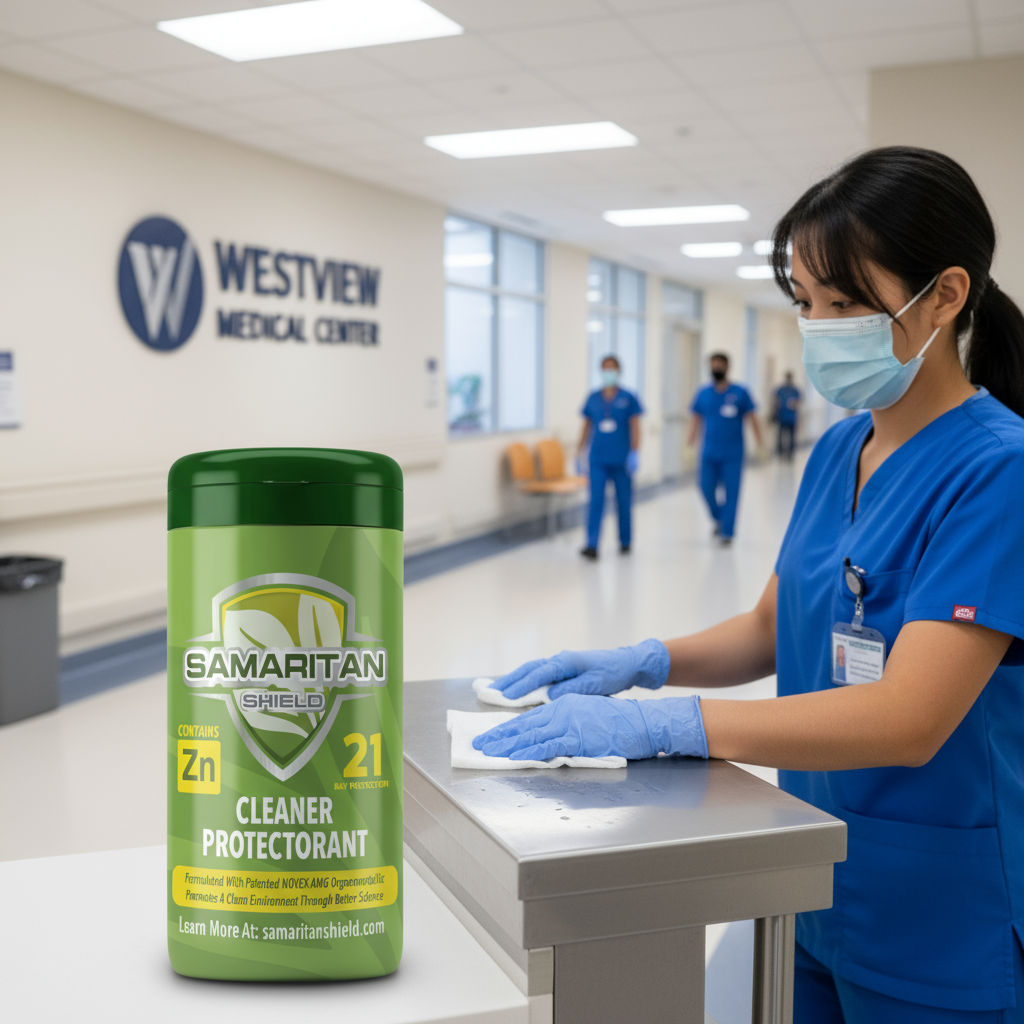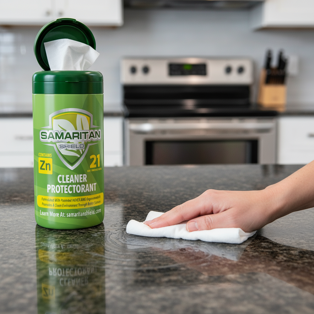 Whether you’re protecting a countertop, fitness equipment, school desk, or public handrail, Samaritan Shield is designed to work on virtually every surface: from granite and stainless steel to leather and upholstery. And because it’s non-toxic and biodegradable, it’s ideal for healthcare settings, long term care settings, food-prep areas, contract cleaners, facilities management, high-traffic businesses and janitorial and sanitation markets.